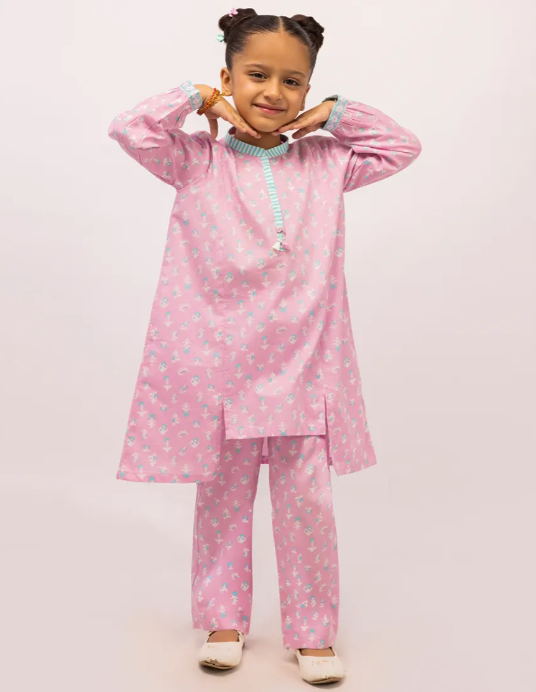 PINK CAMBRIC PRINTED 2PC STITCHED