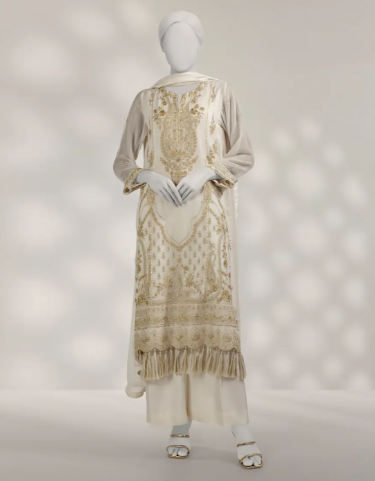 OFF WHITE CHIFFON EMBROIDERED UNSTITCHED 3PC
