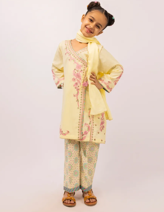 YELLOW DOBBY EMBROIDERED STITCHED 3PC