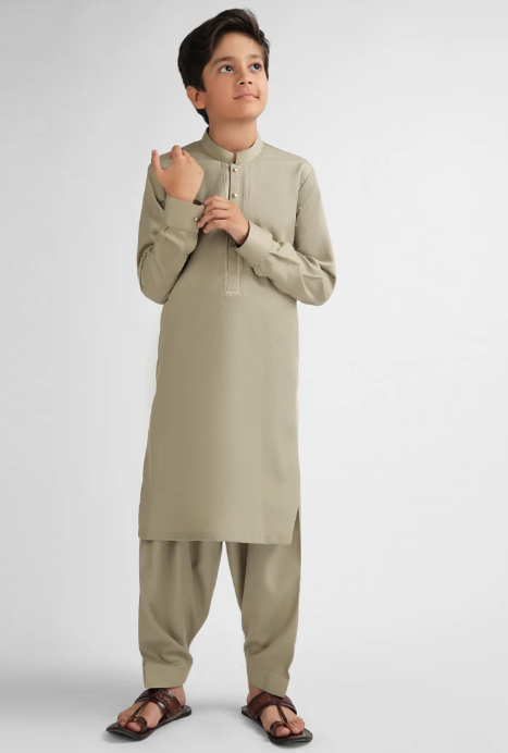 light olive semi-formal kameez shalwar
