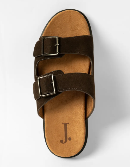 A timeless essential in a rich, earthy tone, these coffee suede bridge slides combine understated style with everyday comfort. Designed with dual buckle straps, they offer a secure fit, while the soft suede upper and cushioned footbed ensure all-day ease.