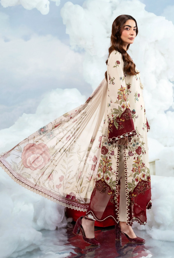 In Stock3 Pc Unstitched Embroidered Lawn Suit
