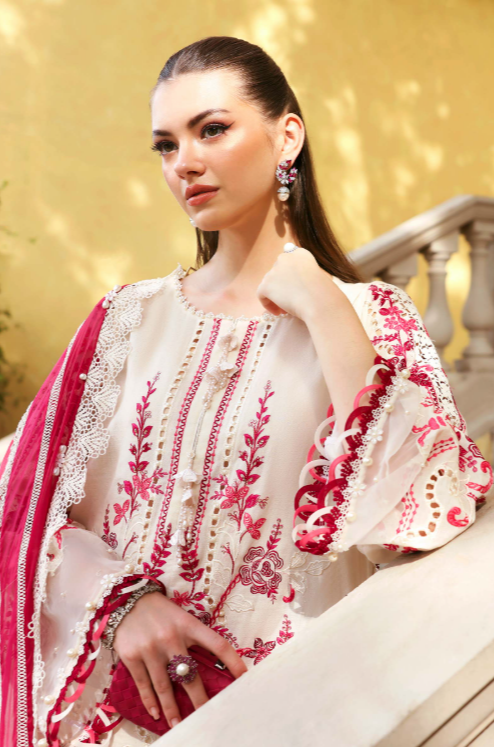 Embroidered Jacquard Lawn Sleeves R+L With Stickon Pearls