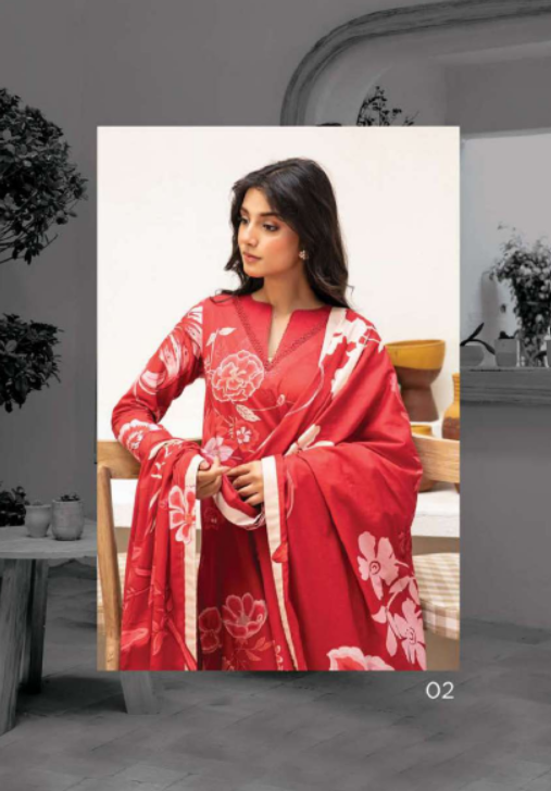 Printed Sleeves With Lace & Pearls Detailing On Border