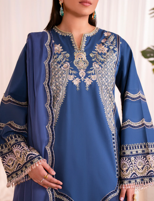 Embroidered Organza Patti Front+Back Chalk+Sleeve   7.64   Yard